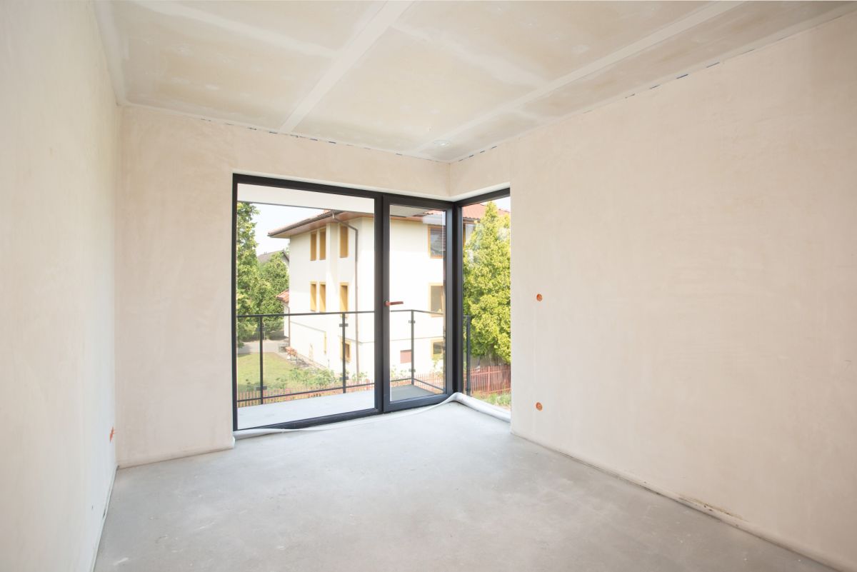 Dom w stanie deweloperskim z przygotowaną instalacją pod klimatyzację, panele fotowoltaiczne i ładowarkę na samochód elektryczny. Duży, częściowo ogrodzony ogród o powierzchni 8,5 ara. Wytyczone 2 miejsca parkingowe, wykończone kostką brukową.