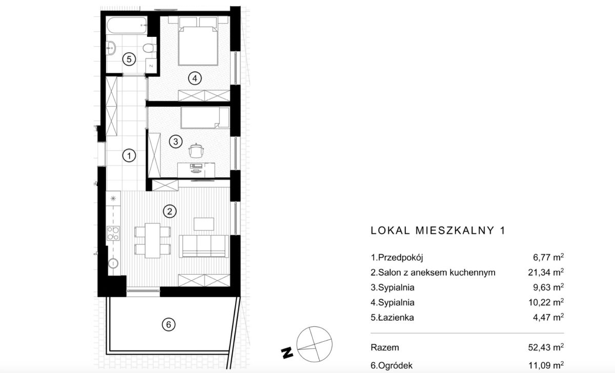 Powierzchnia użytkowa: 52,43 m²